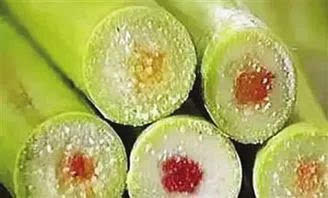有的甘蔗切来,瓤部颜色较深,如果呈黑色或红色,便是发霉变质的甘蔗。一定不要变色的甘蔗!