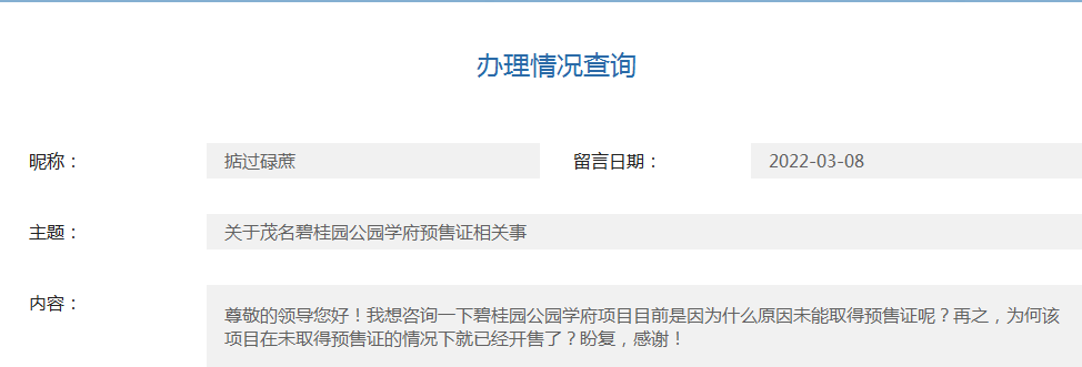 尊敬的领导您好!我想咨询一下碧桂园公园学府项目目前是因为什么原因未能取得预售证呢?再之,为何该项目在未取得预售证的情况下就已经开售了?盼复,感谢!