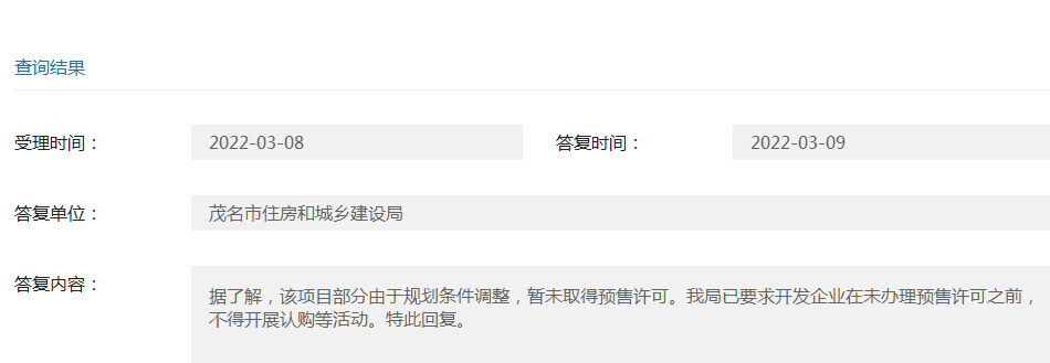 据了解,该项目部分由于规划条件调整,暂未取得预售许可。我局已要求开发企业在未办理预售许可之前,不得开展认购等活动。特此回复。