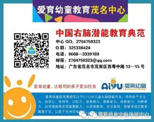 只要您的孩子年满1岁,发送孩子姓名+您的联系方式,发送至本号,即可免费预约一节茂名爱育幼童脑潜能课程。