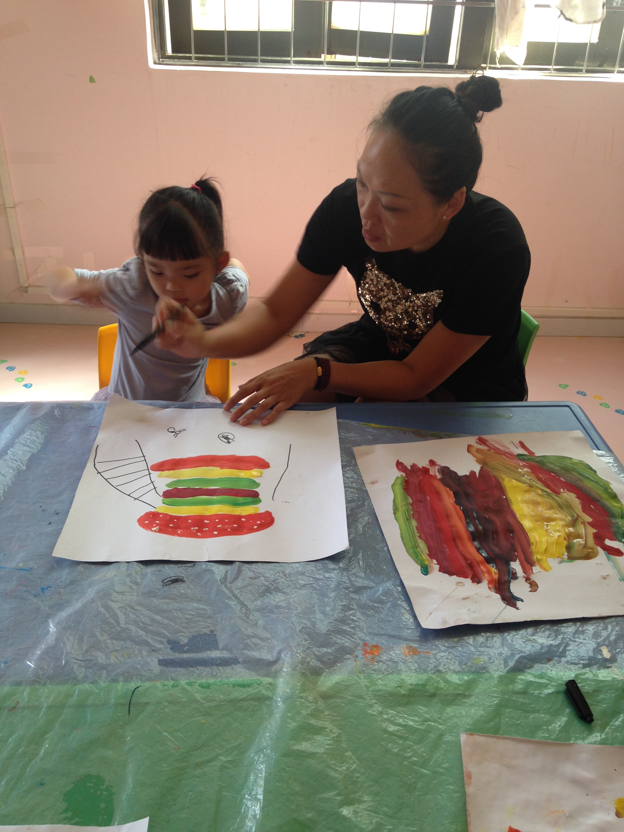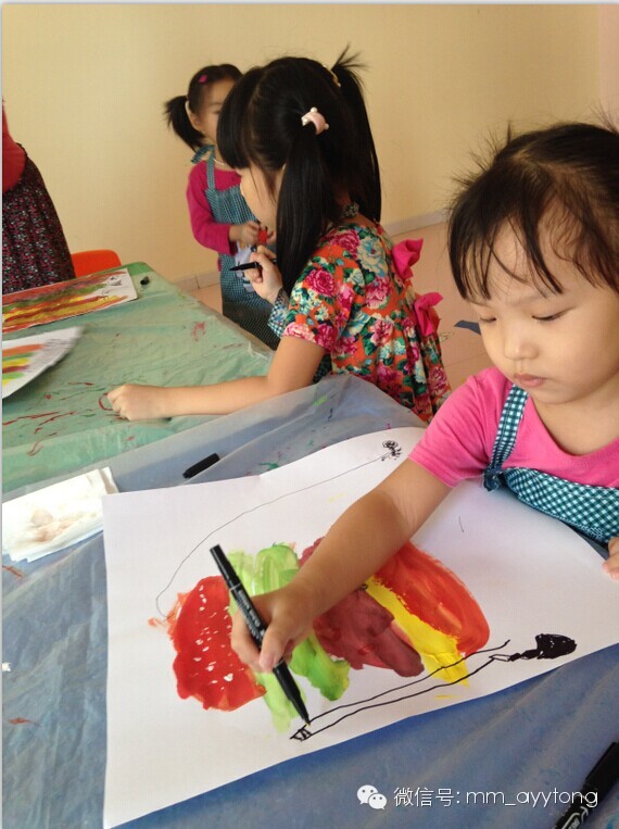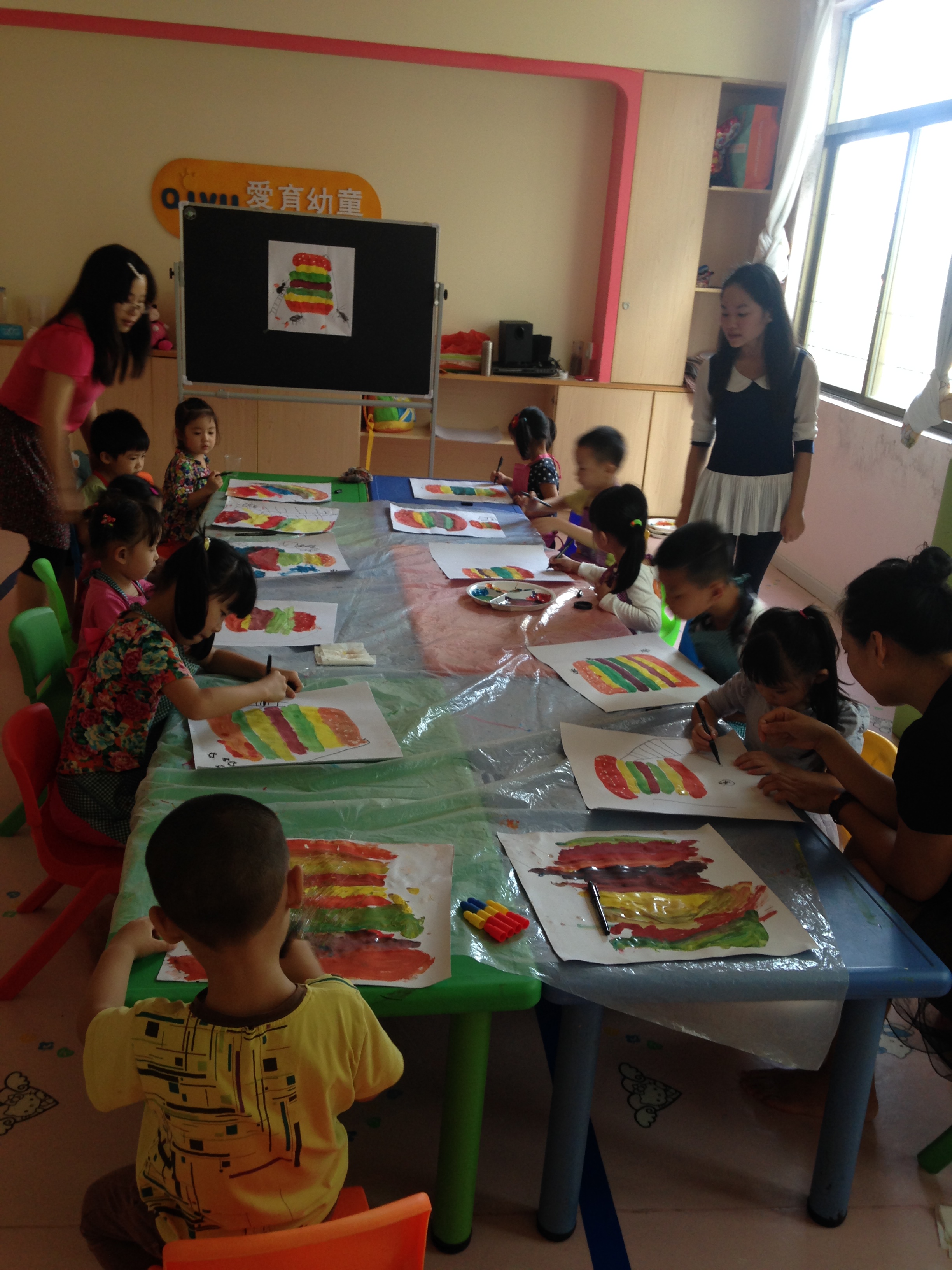 体会二:爱育绘画比以前的传统模式提高了很多。要求孩子充分去感知这个物体,知道这个物象,让孩子通过观察,并把观察到的内容转化为孩子自己的知识,然后创作出比较有个性的画,我觉得这一点非常好,比以前的传统模式提高了很多。