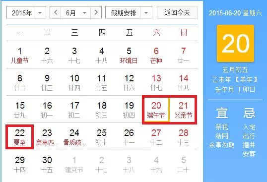 5、2015年端午节:6月20日放假,6月22日(星期一)补休 共三天。
