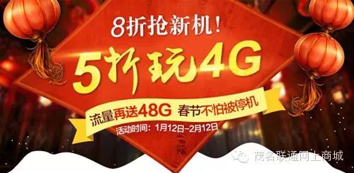 这个春节,和家人、朋友们重温星爷经典电影,又担心流量不给力?!不用怕!来广东联通网上营业厅(10010.com)参加“5折玩4G·8折抢新机·流量再送48G·春节不怕被停机”的新春优惠趴!!55元4G全国套餐卡,48G大流量极速4G让你逛遍各大视频APP看到爽!